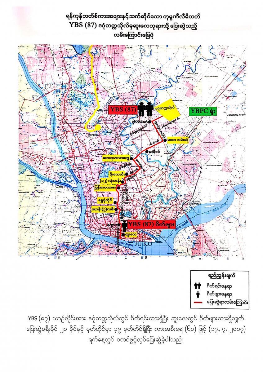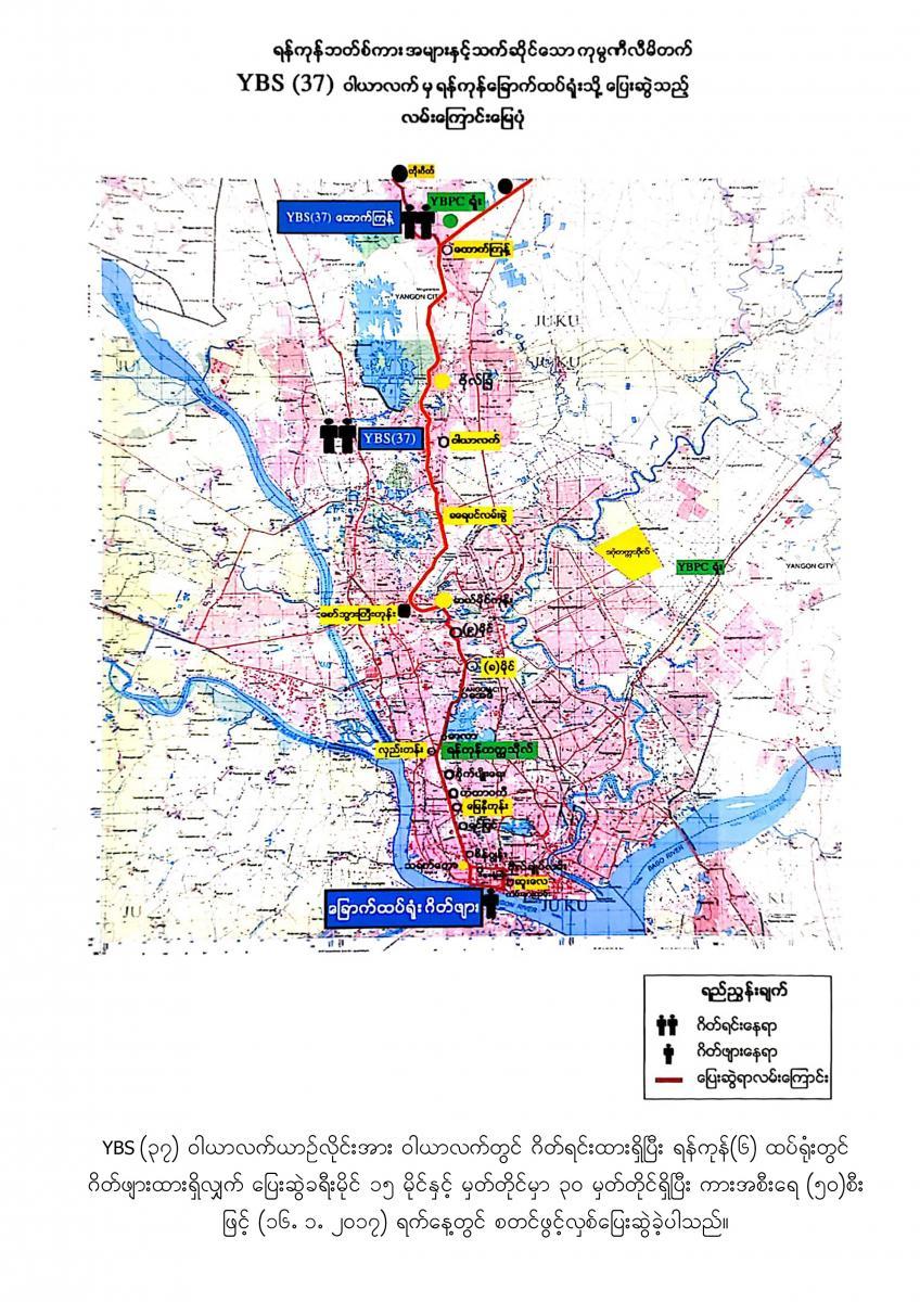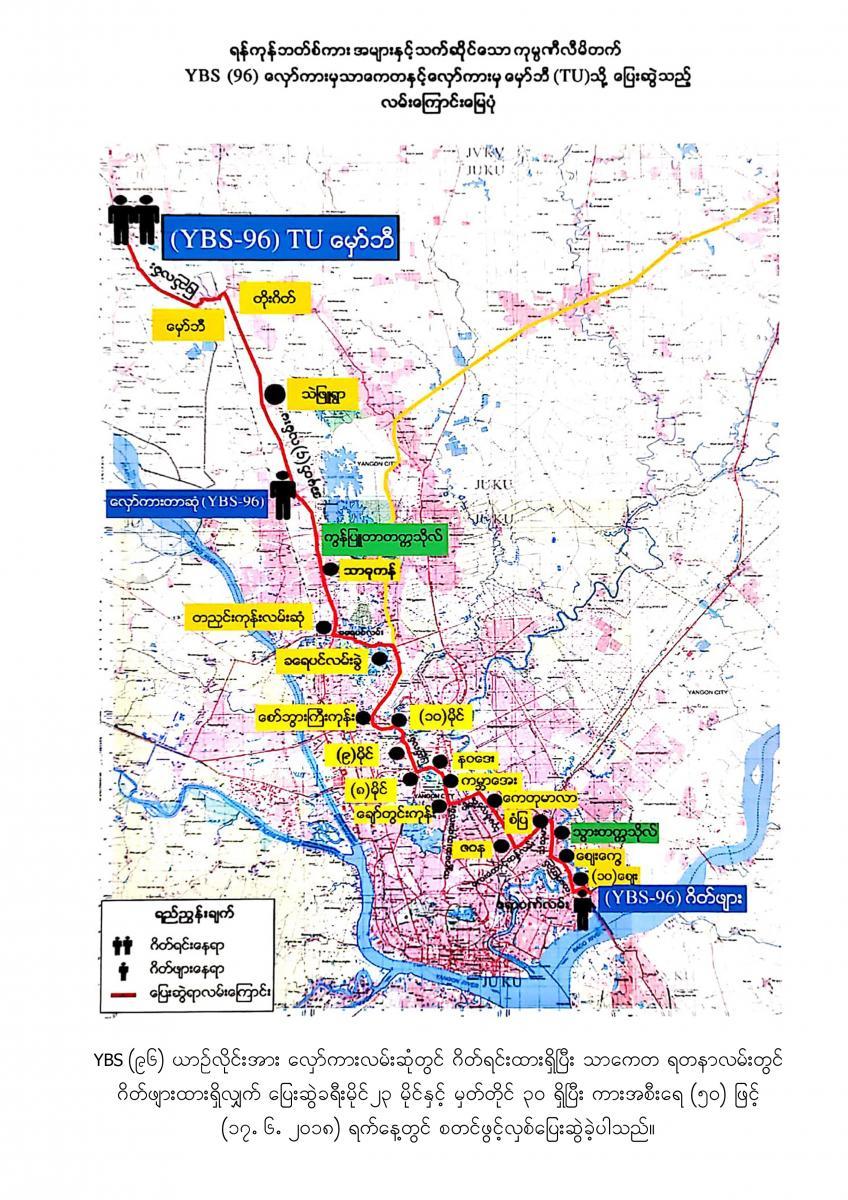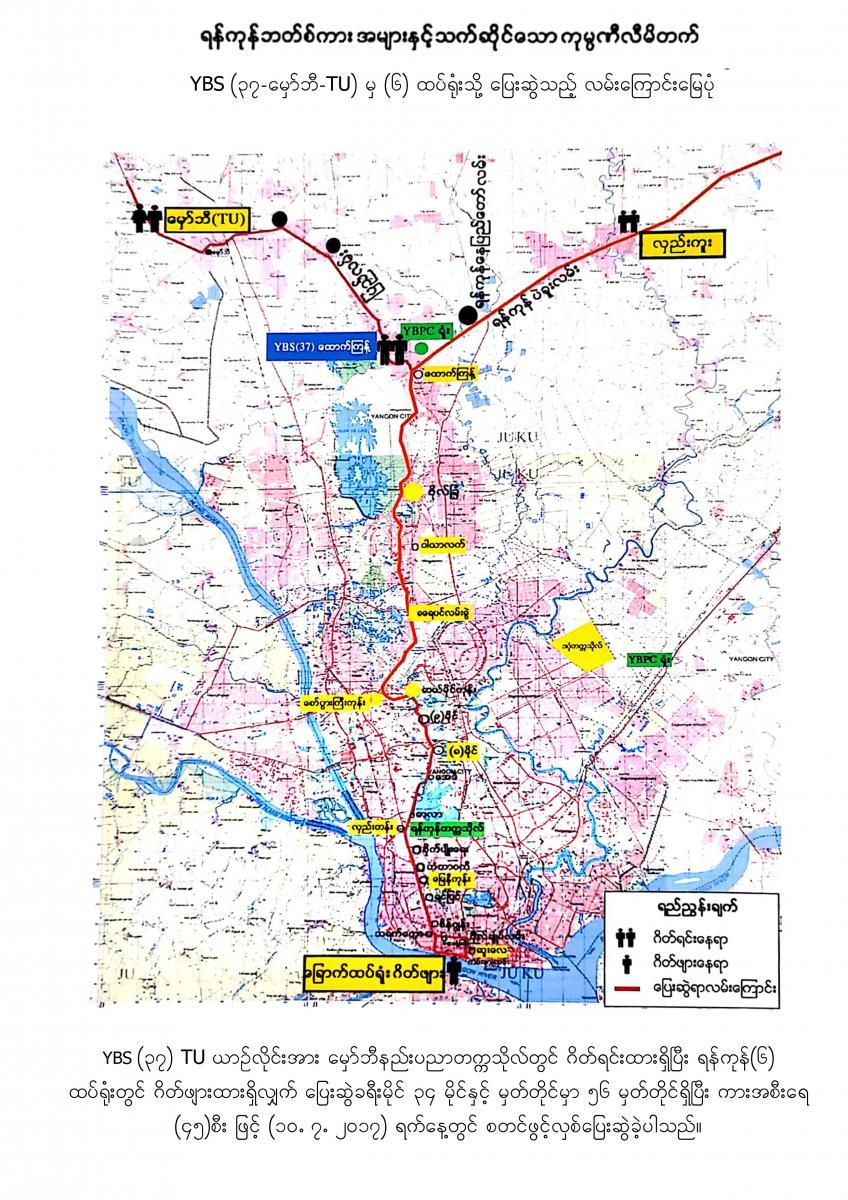 18.7.2017 ရက်နေ့မှစတင်၍ YBPC ကုမ္ပဏီသည် ရန်ကုန်တိုင်းဒေသကြီးအစိုးရအဖွဲ့ထံမှ အစုရှယ်ယာထည့်ဝင်သော Yutong City Bus အစီး ၂၅၀ နှင့် Ankai City Bus အစီး ၂၅၀ တို့ကို မှော်ဘီ- ထောက်ကြန့်- ဆူးလေ၊ လှည်းကူး- ထောက်ကြန့်- ဆူးလေ၊ ဥက္ကံ- မှော်ဘီ - ဆူးလေ၊ ဗိုလ်တစ်ထောင်-ရန်ကင်း- ဝါယာလက်၊ ဒဂုံတက္ကသိုလ်- ဆူးလေ၊ ဒဂ