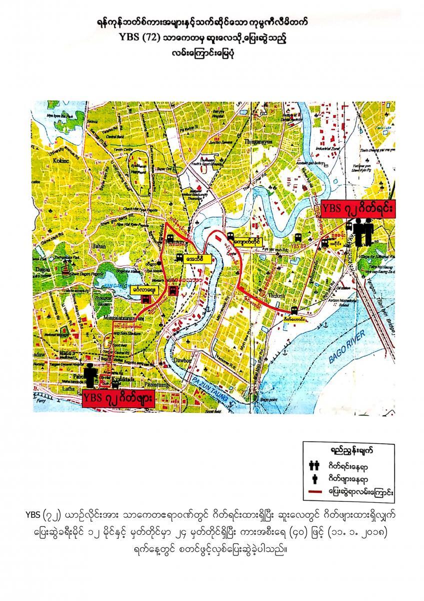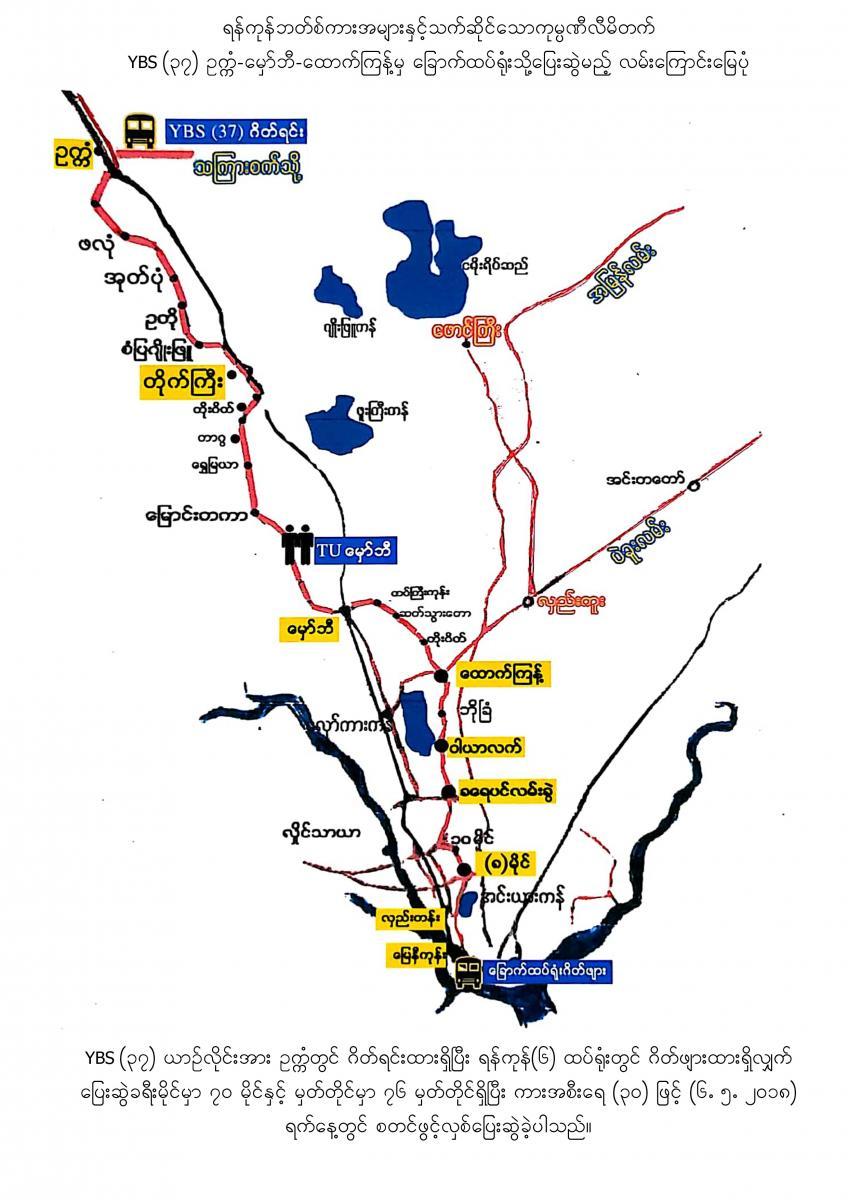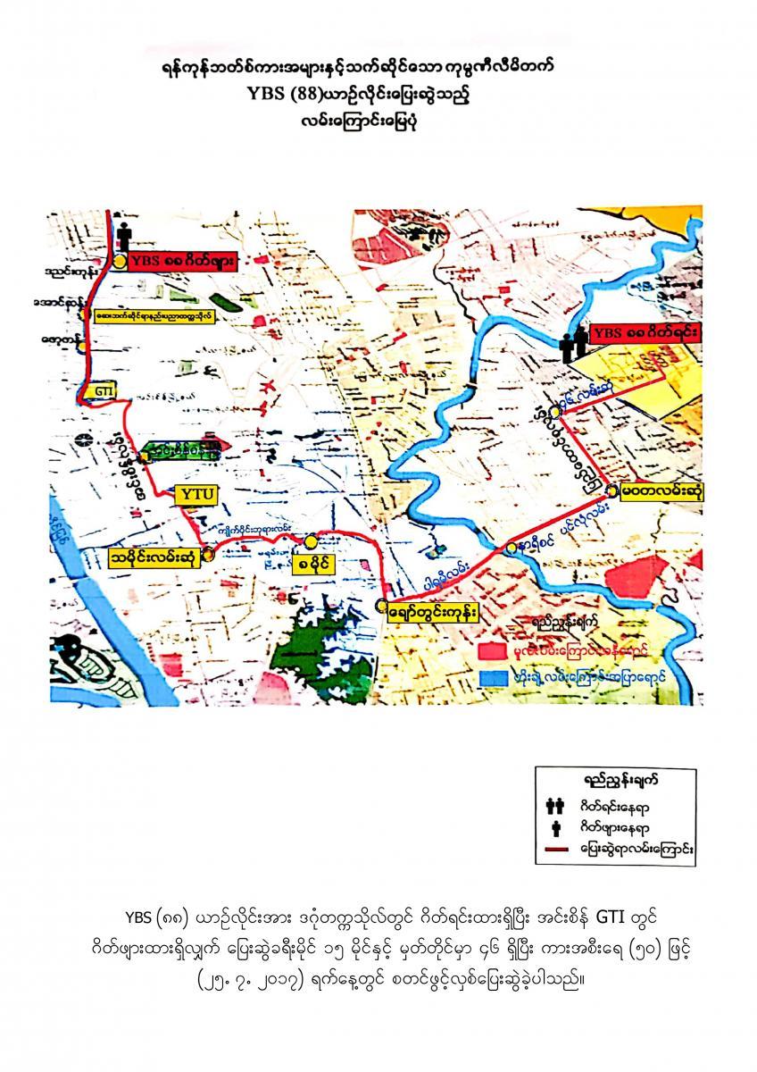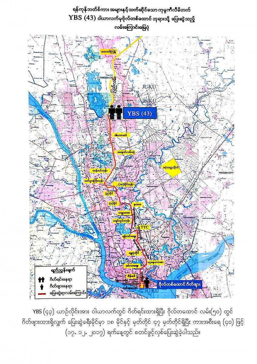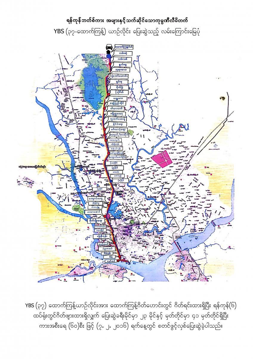 18.7.2017 ရက်နေ့မှစတင်၍ YBPC ကုမ္ပဏီသည် ရန်ကုန်တိုင်းဒေသကြီးအစိုးရအဖွဲ့ထံမှ အစုရှယ်ယာထည့်ဝင်သော Yutong City Bus အစီး ၂၅၀ နှင့် Ankai City Bus အစီး ၂၅၀ တို့ကို မှော်ဘီ- ထောက်ကြန့်- ဆူးလေ၊ လှည်းကူး- ထောက်ကြန့်- ဆူးလေ၊ ဥက္ကံ- မှော်ဘီ - ဆူးလေ၊ ဗိုလ်တစ်ထောင်-ရန်ကင်း- ဝါယာလက်၊ ဒဂုံတက္ကသိုလ်- ဆူးလေ၊ ဒဂ