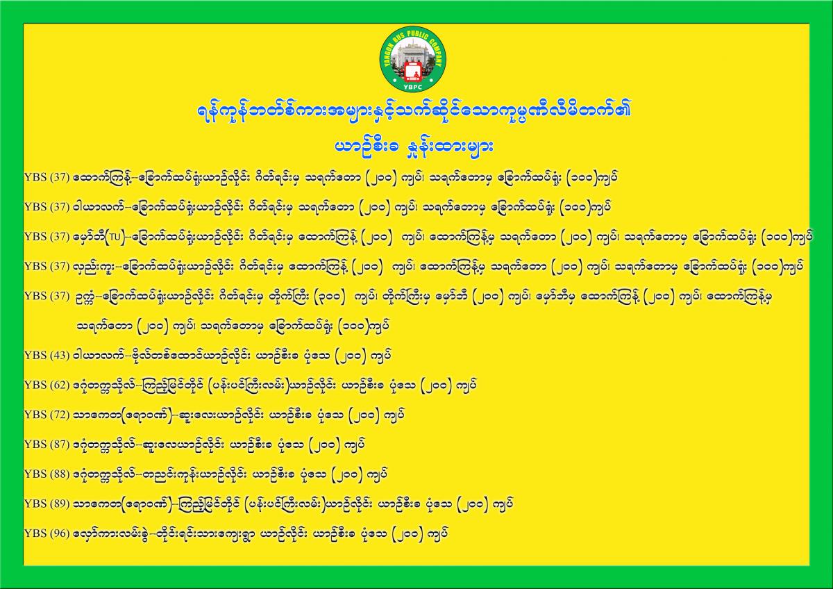 YBPC ကုမ္ပဏီ၏ လက်ရှိယာဉ်စီးခနှုန်းထားများ