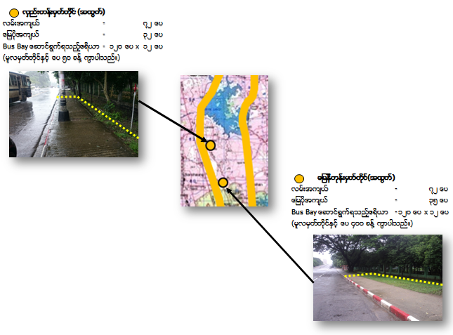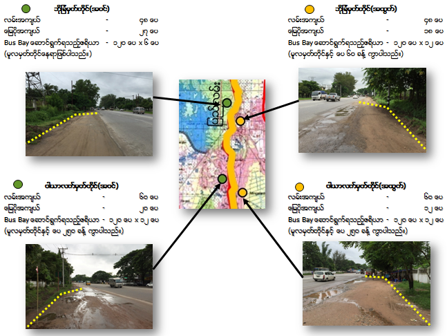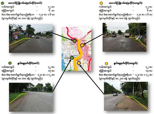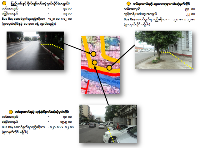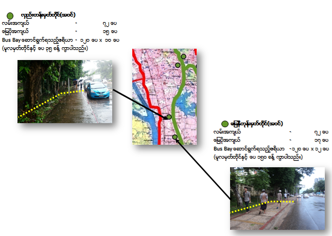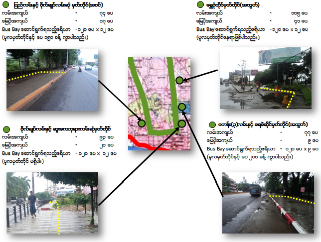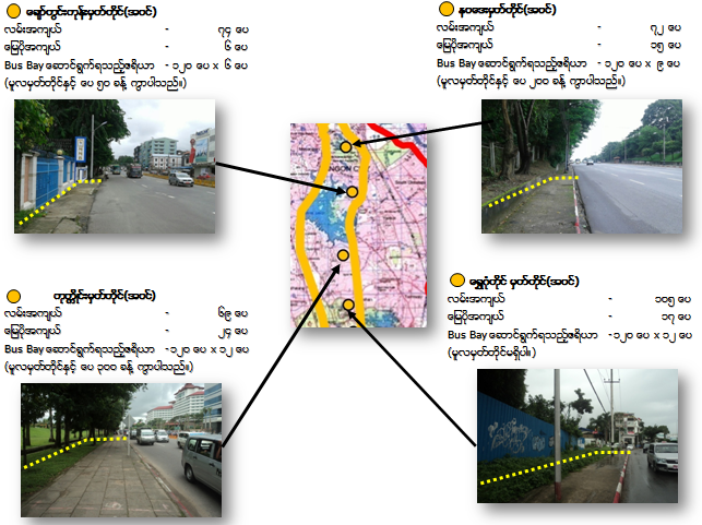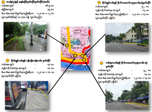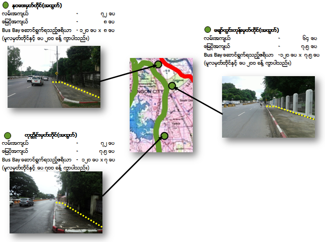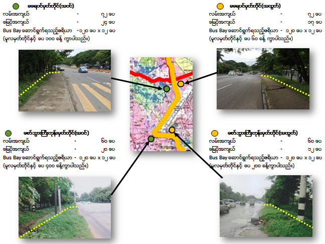 အများပိုင်ဘတ်စ်ကားစနစ်ဖြင့်ပြေးဆွဲမည့်အဆိုပြုလမ်းကြောင်းနှင့် ယာဉ်ရပ်နားရန်နေရာများ